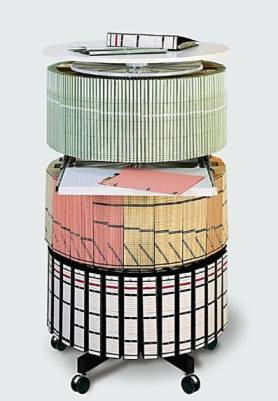 Tiers, which rotate silently on maintenance-free ball bearings, are adjustable to any height. Standard setting is for size A4 documents.